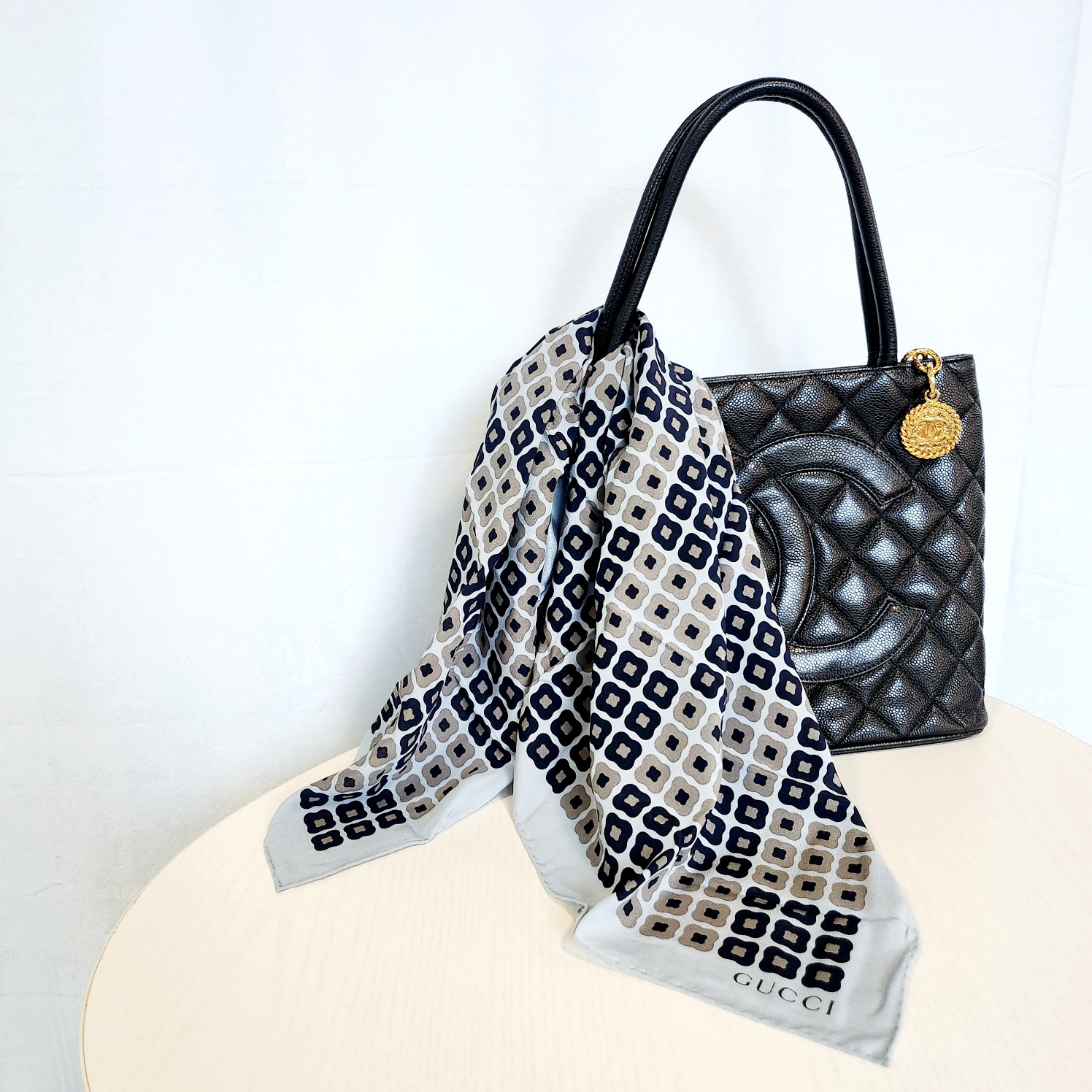[JBF6741-0729-01] GUCCI 구찌 빈티지 스카프(65cm)+엘레강스 파리 카드 거울 세트